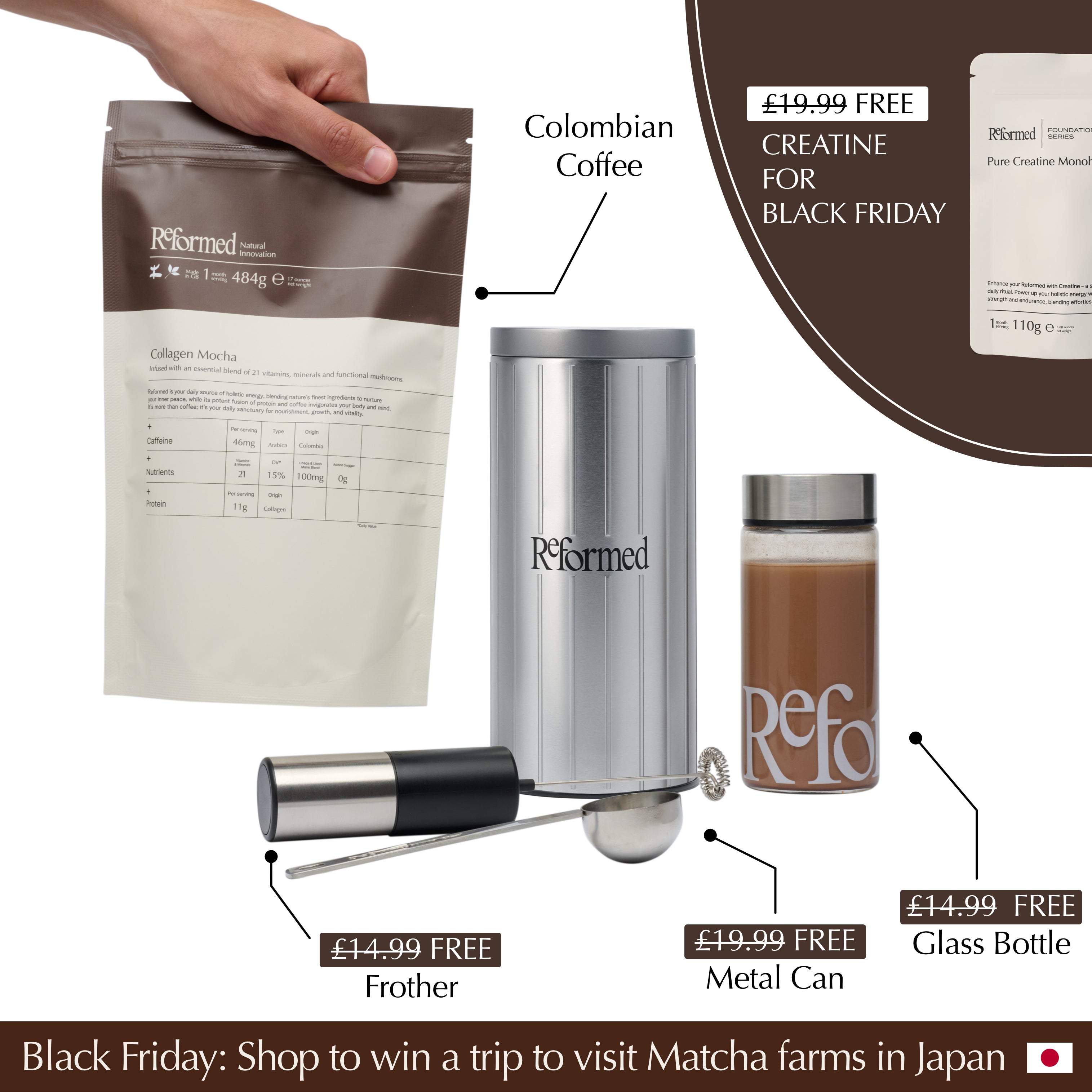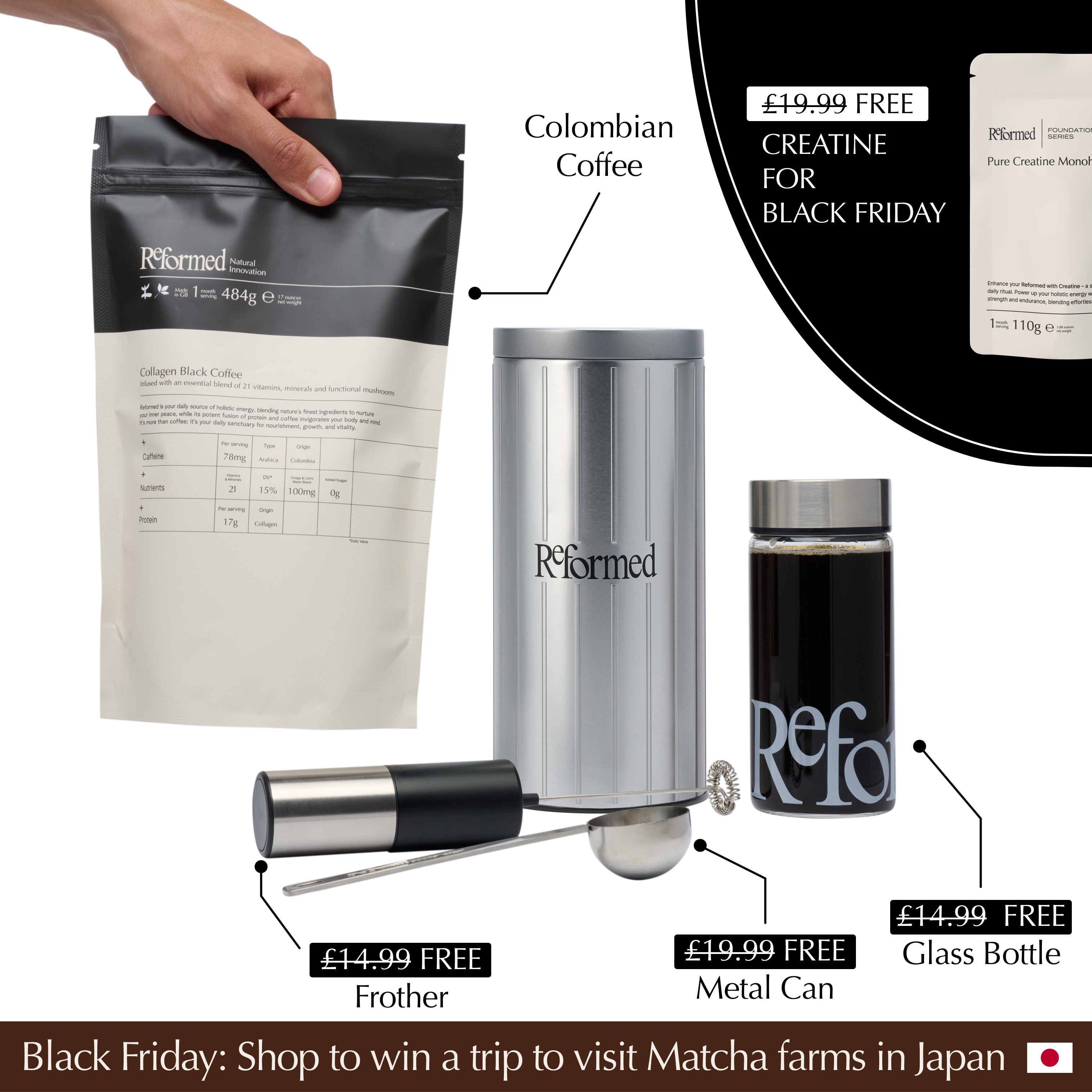 Our Collagen Coffee + Collagen Matcha delivers the timeless excellence of coffee and ceremonial matcha, elevated with premium collagen