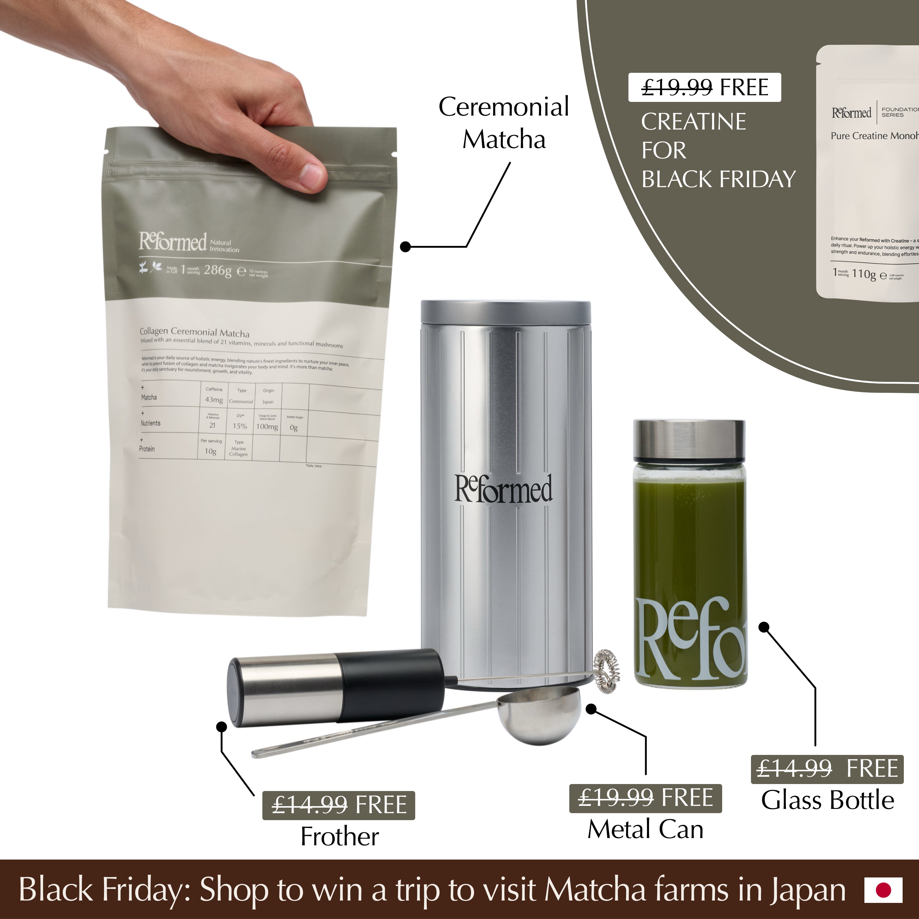 Reformed delivers an exceptional taste, preserving the rich flavour of Ceremonial Grade Matcha while offering functional benefits.