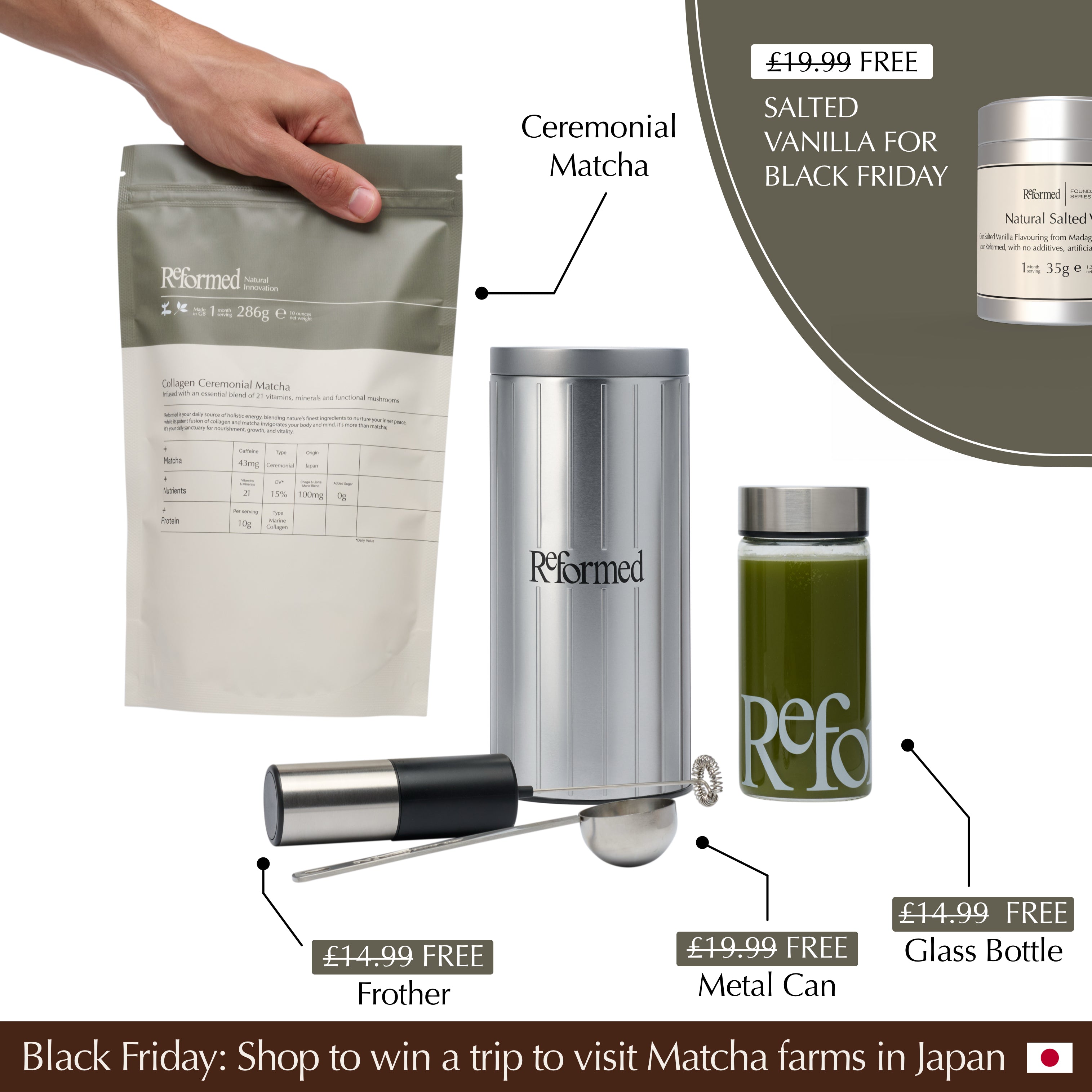 Reformed delivers an exceptional taste, preserving the rich flavour of Ceremonial Grade Matcha while offering functional benefits.