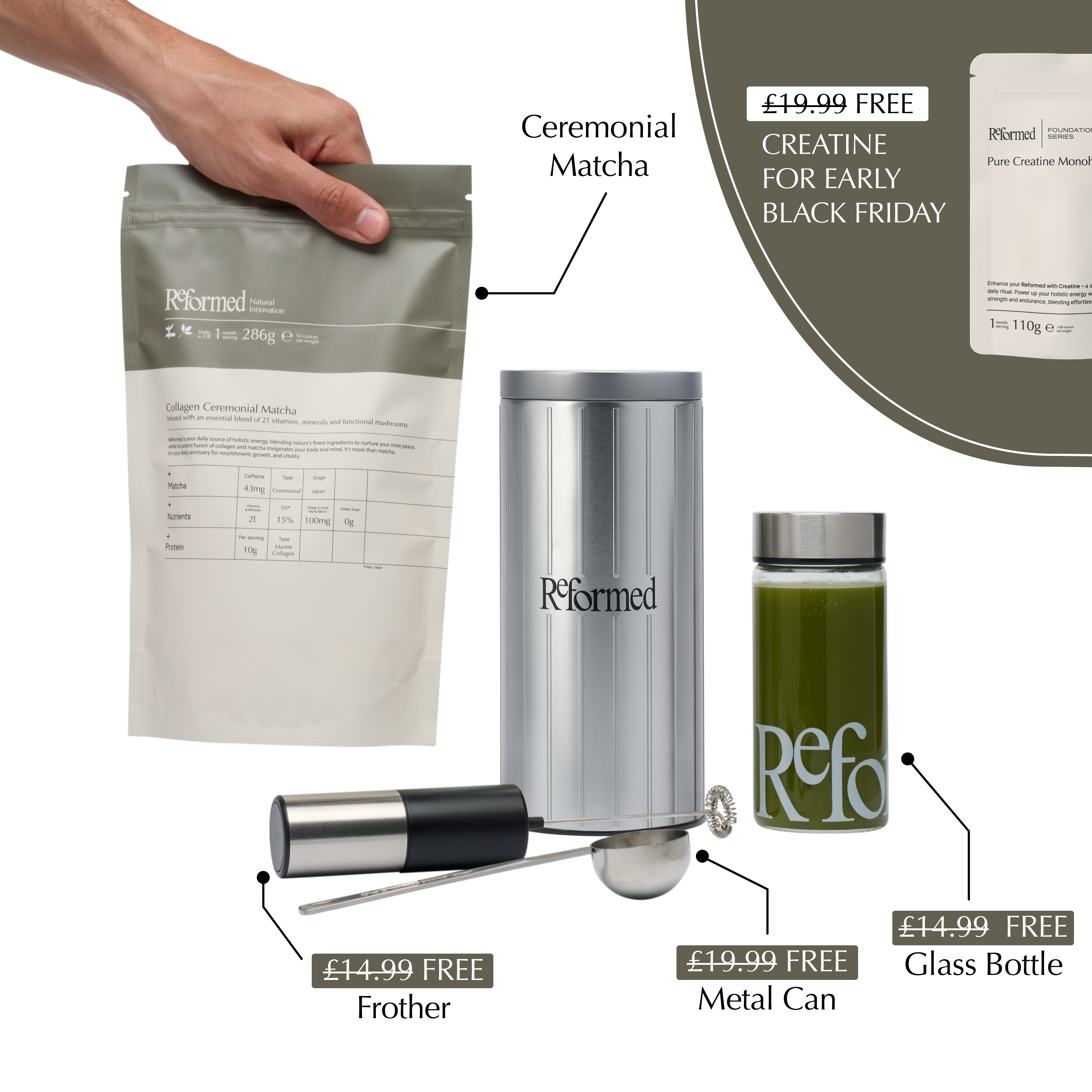 Reformed delivers an exceptional taste, preserving the rich flavour of Ceremonial Grade Matcha while offering functional benefits.