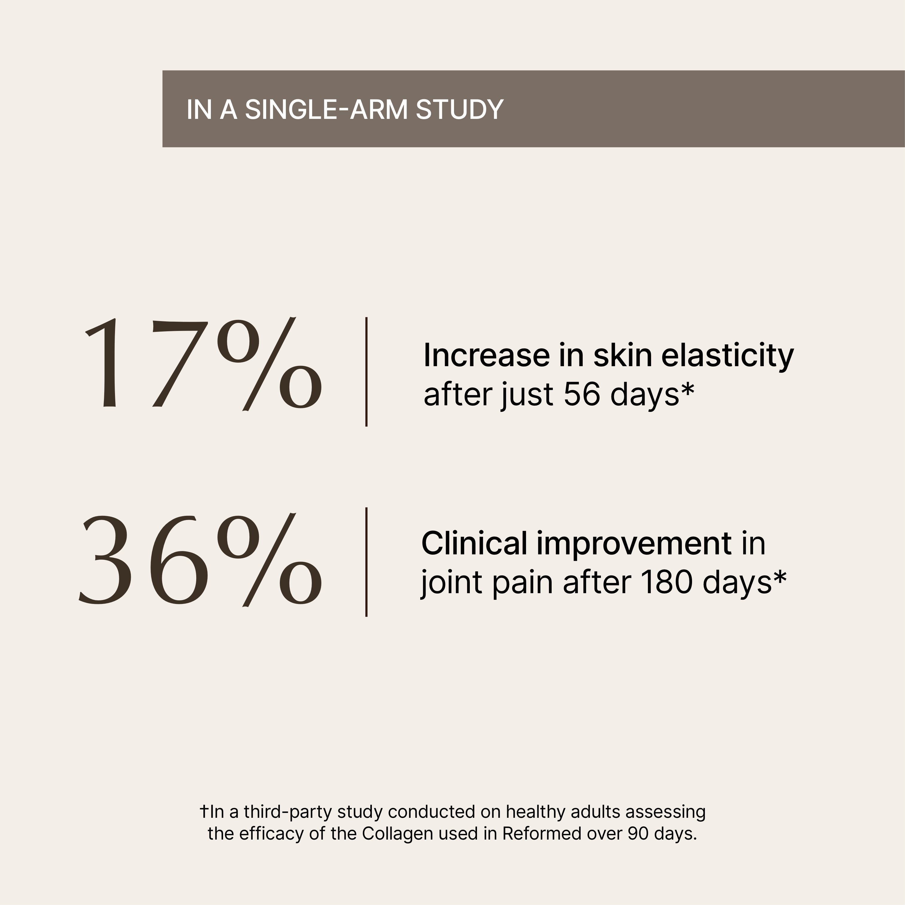 †In a third-party study conducted on healthy adults assessing the efficacy of the Collagen used in Reformed over 90 days.