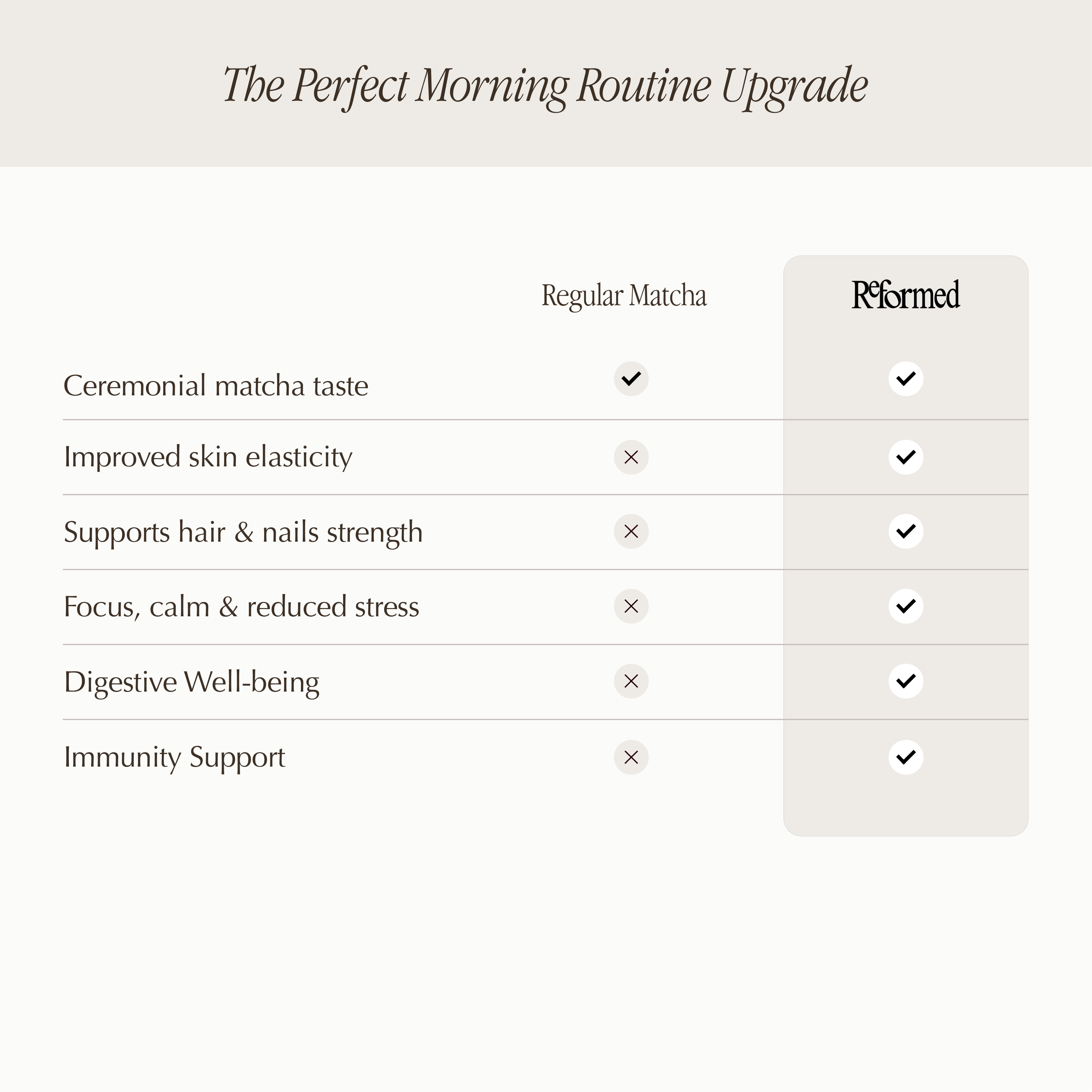 Reformed delivers an exceptional taste, preserving the rich flavour of Ceremonial Grade Matcha while offering functional benefits.