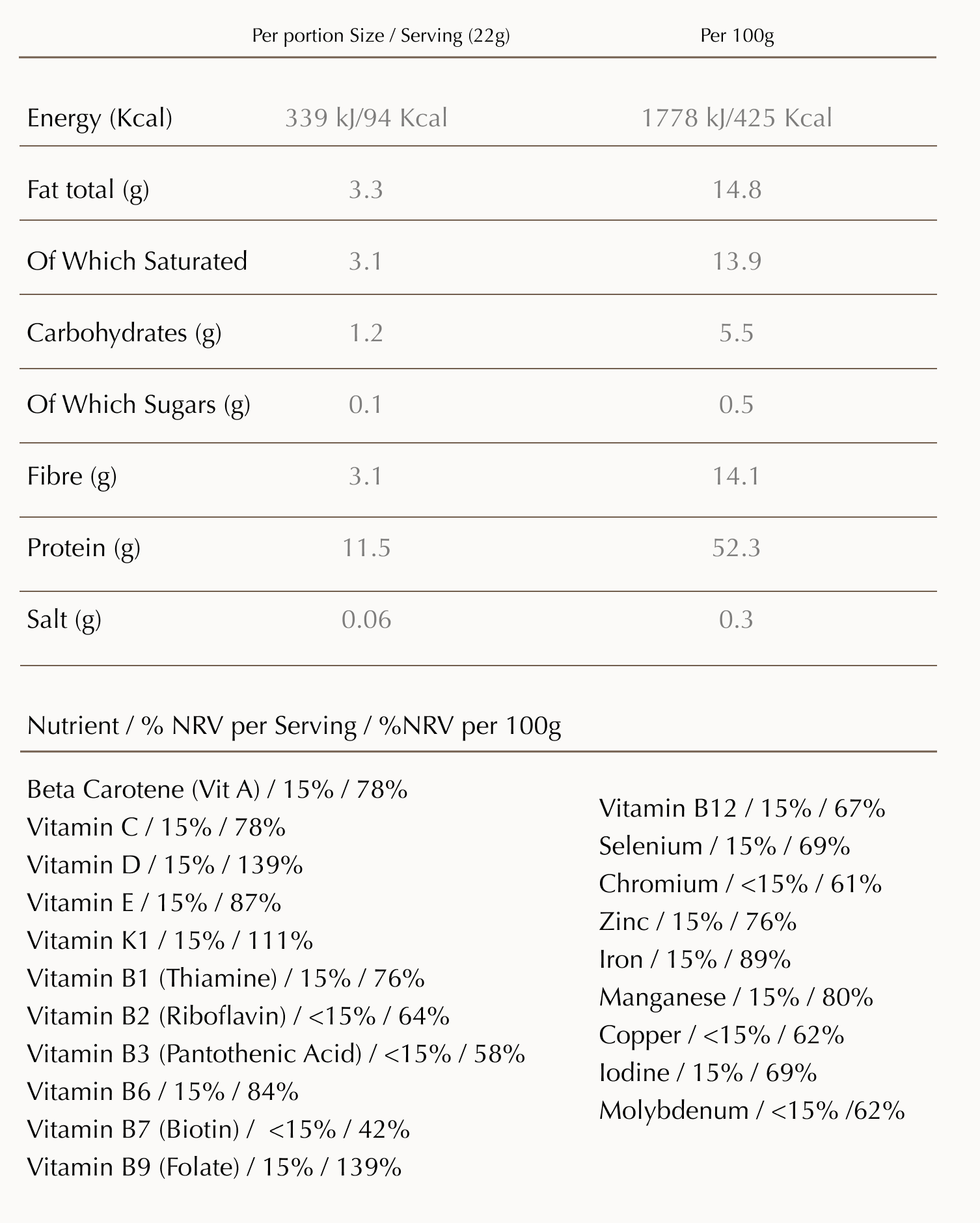 Hydrolysed Collagen 100% (Halal & Kosher), Colombian Coffee, Cocoa Powder, MCT Powder, Coconut Milk Powder, Lion's Mane Mushroom, Chaga Mushroom, Stevia, Himalayan Salt, Vitamins & Minerals.